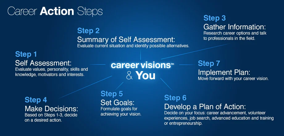 We will guide you through a series of Career Action Steps, a sophisticated model of career development which integrates the latest research in the field. The ultimate goal is the realization of your career vision.